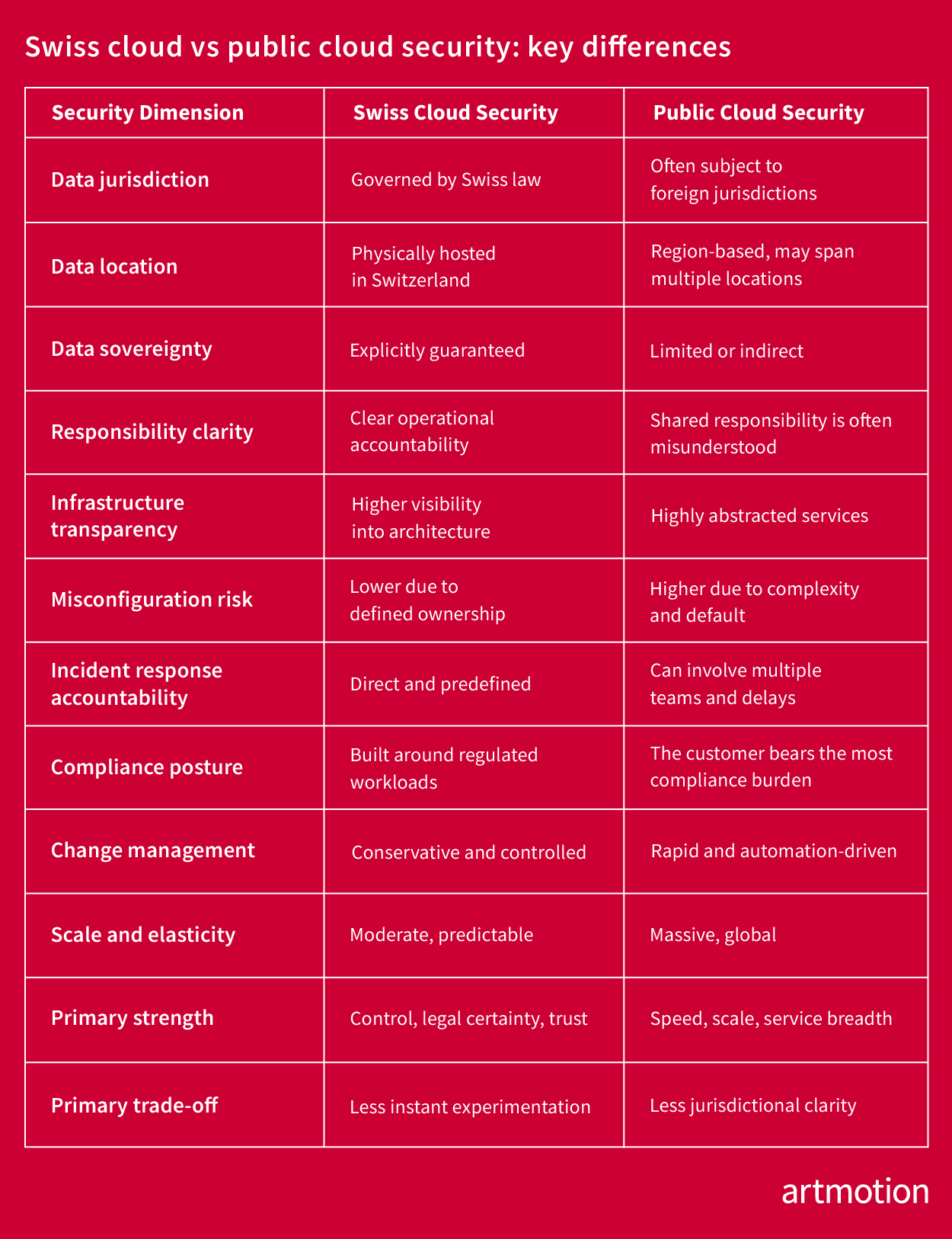 Figure 1: Swiss cloud vs public cloud security: key differences
